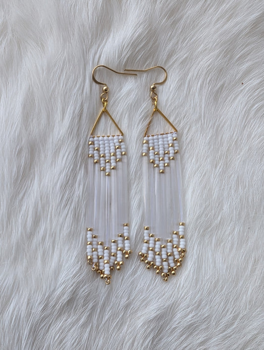Gold, Opaque & White Satin Bugle Fringe