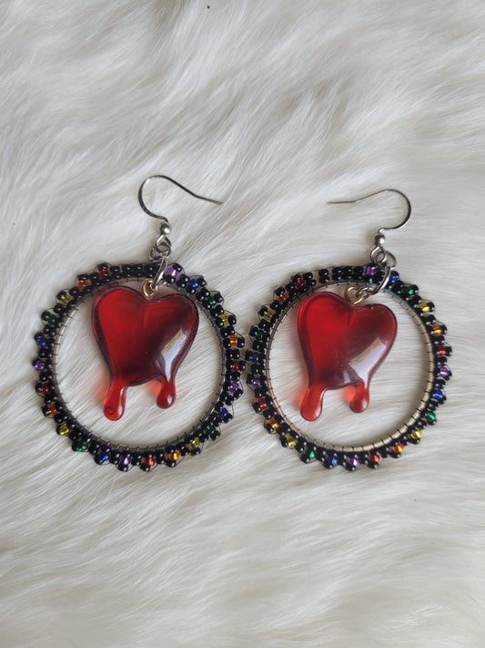 Black & Rainbow Bleeding Heart Hoops